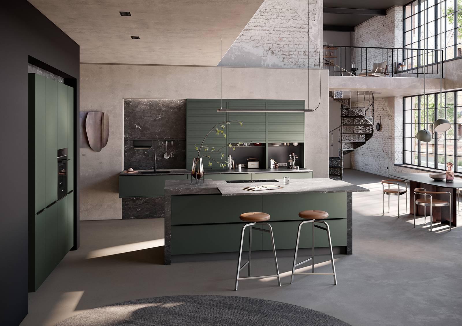 A matt kitchen allows for considered material combinations.